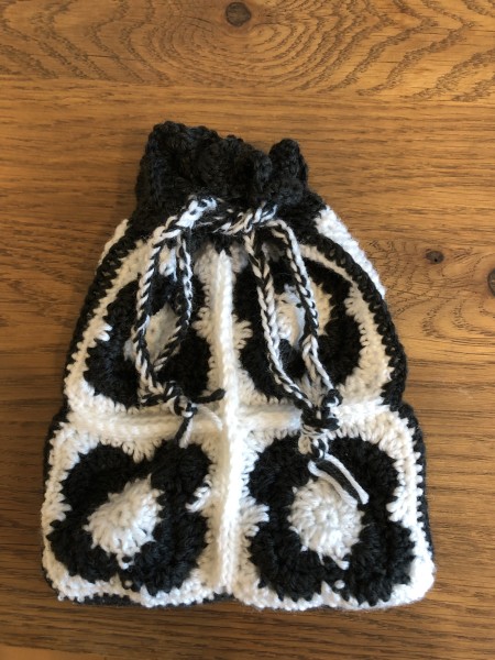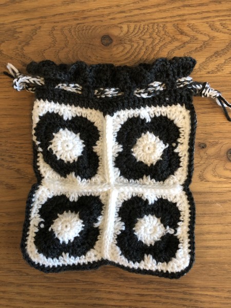 モチーフ編みの巾着が編みたくなり、ハルニットさんの作品を参考に編みました。