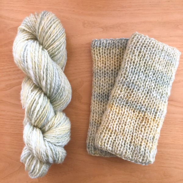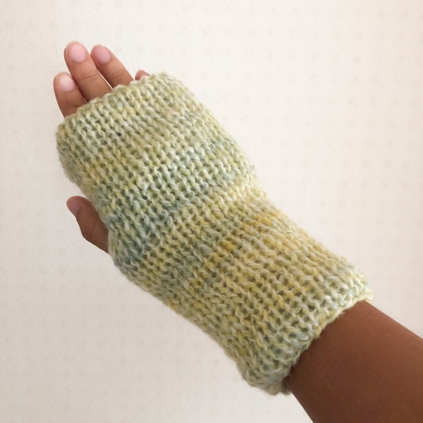 50gの手紡ぎ糸を使って、ハンドウォーマーが完成しました。