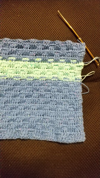 予定を変更して2色使いにすることに。と言ってもほどくのは嫌なので、ここからボーダー状に違う色を入れるしか出来ないけど(@_@;)