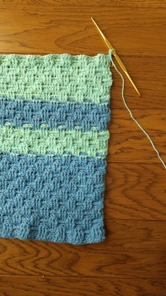 3段目以降:表引き上げ長編み、裏引き上げ長編みを3目毎交互に