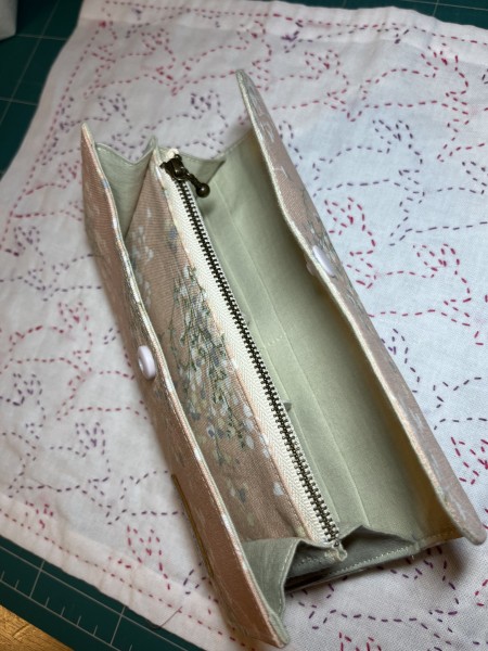 カード入れ8枚、コイン入れ、お札入れ2ヶ所の横長財布。