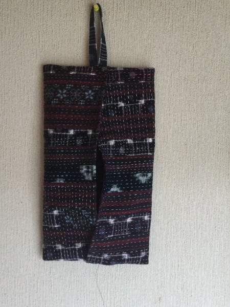 絣地を使ってラリーキルトをしてティッシュボックスカバーに仕上げる