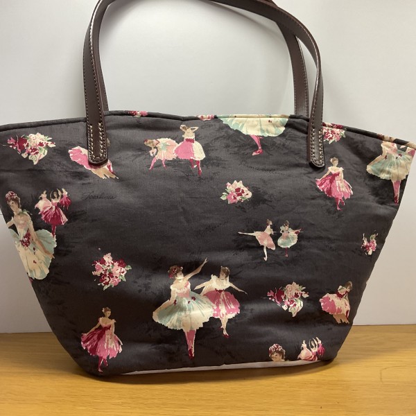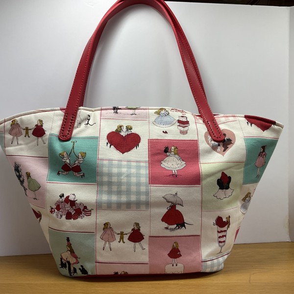 ヨーロピアン柄だったのでマルシェバッグに。色違いの持ち手が4色あったので合わせてみました。