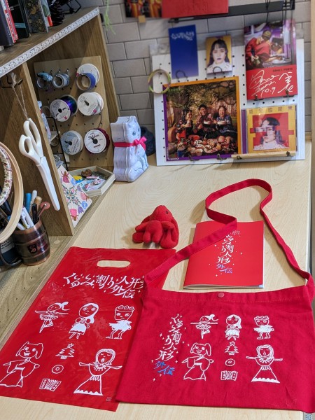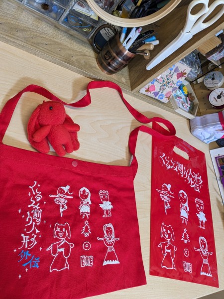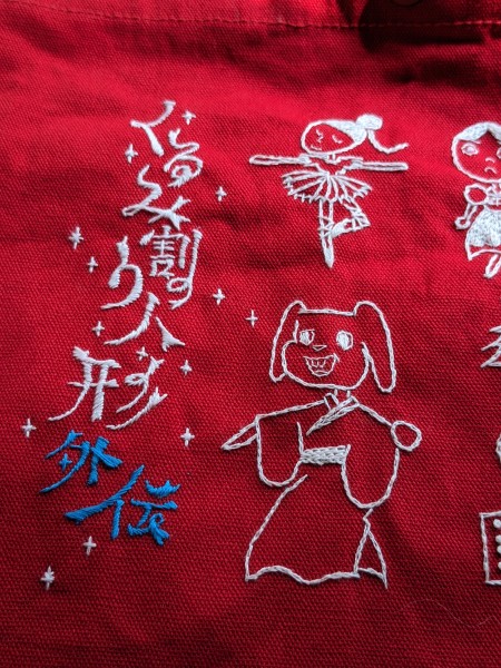 推しが描いたイラストの物販袋の絵を白糸で刺繍しました。