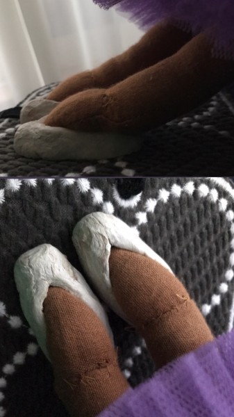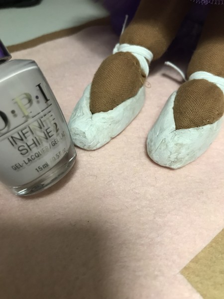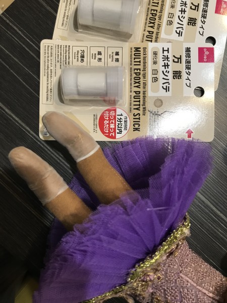 人形に履かせる靴をつくりました。ダイソーのエポキシ樹脂、着色はポリッシュです。形成が大変でしたが、色をつけると何とかそれっぽくなりました