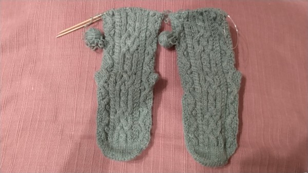 一度完成させたんだけど、履き口を減目するのを忘れていたのでラーメンにして編み直し。