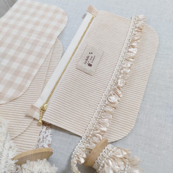 側面に使う予定の薄手の生地で作りました。