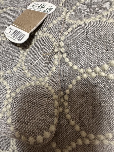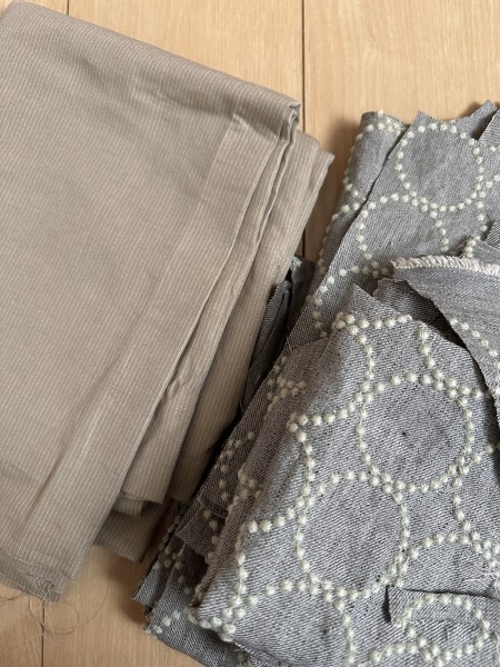 1枚目⇒以前買って寝かせてあったタンバリンの生地を使いたいと思います。ざっくり生地と型紙合わせ。