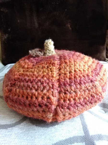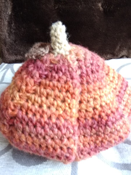 急に思い立ち、姪の子供にカボチャ帽子を編んでみました