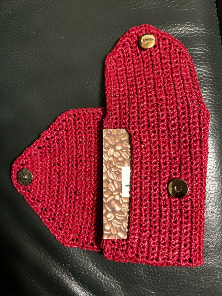 表側の横開きの大きな開け口からはお札やカード、裏側の縦開きからは小銭を入れられる作りになっています。