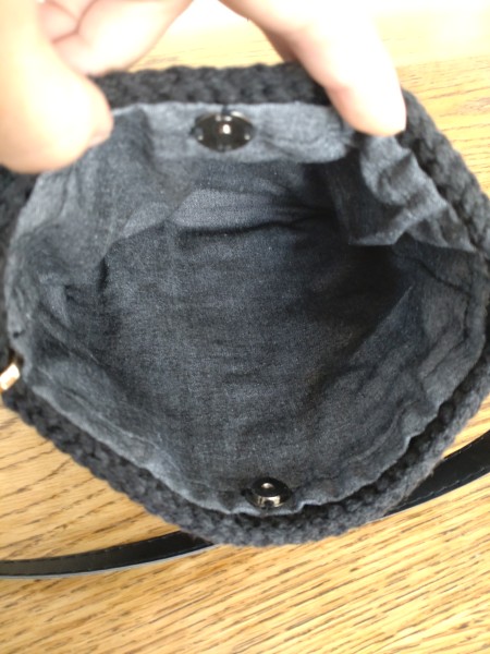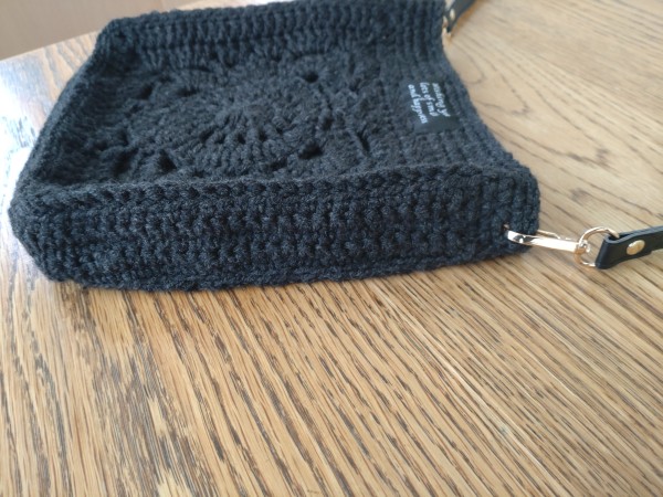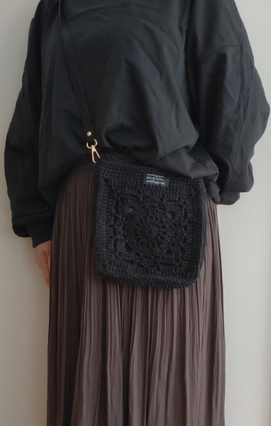 モチーフ編みのトートを作ったときに残った黒のメランジ糸を使って斜め掛けバッグを作りました。