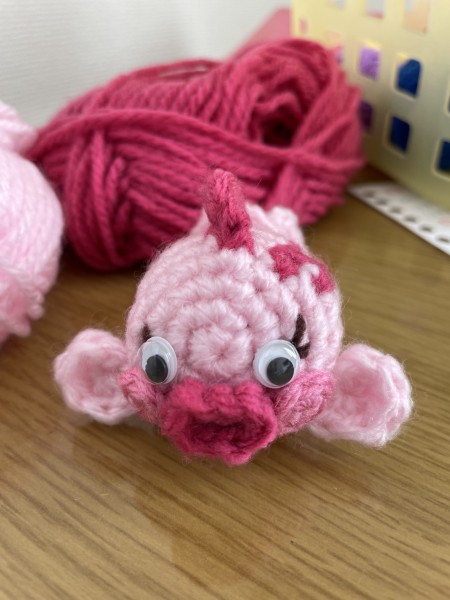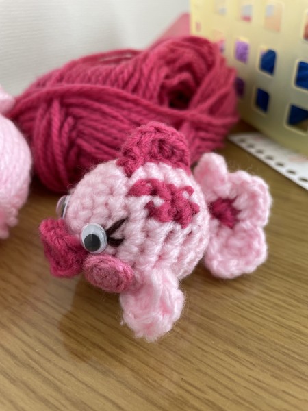 ドーナツ型の金魚鉢に、すっぽりはまっている金魚を作りました。