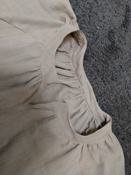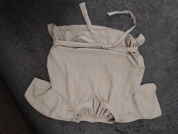 本ではウェストにゴムを入れる仕様でしたが、気分で決められるようにゴムではなく共布でベルトを作りました。