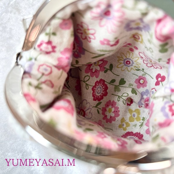 がま口。しっかりとさせたいのでコットンとレース糸引き揃えで編んでます。