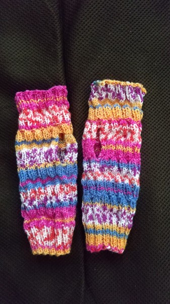 中細ソックヤーンで編んでるけど、模様編みのおかげで厚みがあり、暖かい。