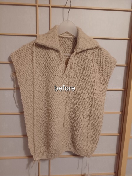 襟を編んだ時になんで気付かなかったのか…襟の糸処理もしてしまった…。