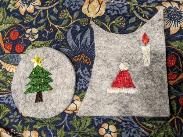aonecoさんのクリスマスモチーフに似ていたのでダウンロードして付け足しでロウソク、帽子、プレゼント、靴下も刺繍しました