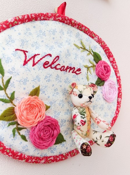 ミニチュアテディベア付きのウェルカムボードを制作しました。
