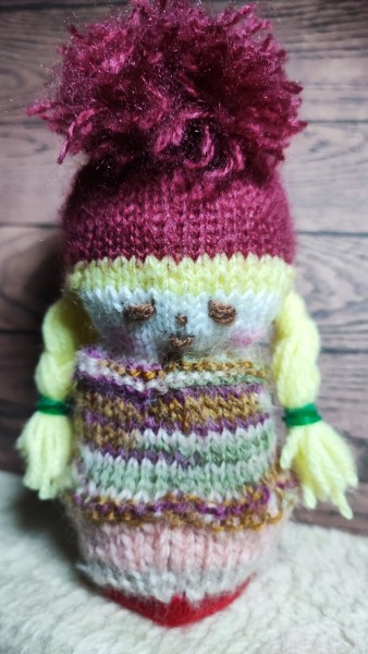 あみぐるみの女の子。 縦約20cm。 自立します。 棒針編みをしたくなり、在庫整理兼ねて久しぶりに作りました。ほのぼのしたお顔に癒され、楽しかったです。 適当に編んだので、同じサイズはつくれなそうです(-_-;) 12月6日編みはじめ。