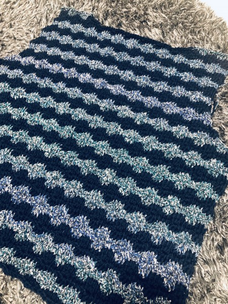 他の作品を作っていたのですが、思い通りに出来ず断念。ただ、毛糸の組み合わせがかなり私好みだったので、何かの形にしたいと思い、作り始めました。 ポーチにしようか、巾着にしようか考えながら作りましたが、最終的にはバッグになりました。 ○青&白 青2本と白1本を引き揃え 中長編み12段 ○白 こま編み6段/5段目に持ち手 ○底 丸 メリヤス編み風 10段 普段使いにするには弱いかな。編み物グッズを入れる手提げにします☆ 初めて行き当たりばったりで作ったけど、楽しかったー(^o^)/
