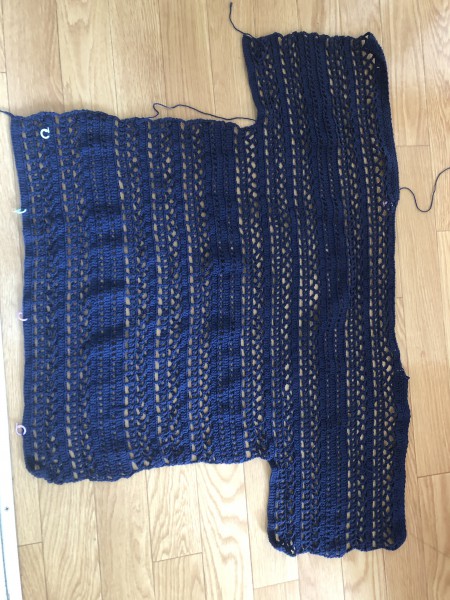 モチーフつなぎのベストです。 平置きだと丈が短めなのですが、着るとちょうどいいくらいになりました。 モチーフから考えたので、愛着があり、たくさん繋ぐのも苦になりませんでした。縁編みはほぼ鎖編みと細編みだけのシンプルなものにしました。
