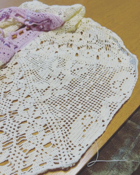 レース編みのモチーフなのですが、余り糸でかぎ針で編みました。