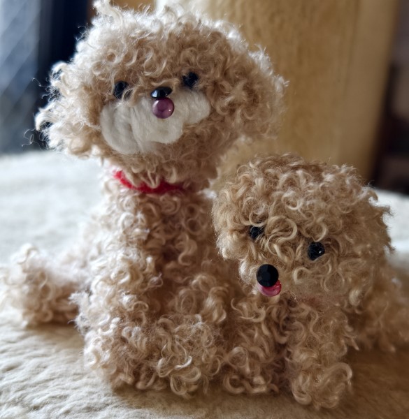 モールアートのトイプードル。 身長約11cmと7cm。 色々ポーズも変えられます。ちょこんと置くと癒してくれる子たちにしました。 今週は外出先でワンちゃんと触れ合えて嬉しかったので(^^)