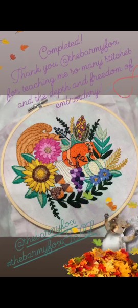 海外のインスタライブを見てステッチを学びながら、毎日少しずつ刺繍するというプログラムに参加し亀の歩みで進めています。