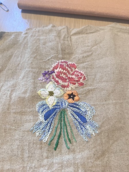 とりあえず刺繍。 いづれ何かに仕立てるけどどうしよう…。 とにかく花束の刺繍がしたいのでやります。