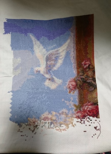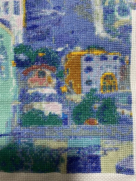 9/28ページ目です。近所の画家さんの代表作を、チクチクしています。