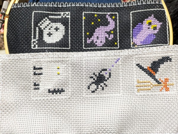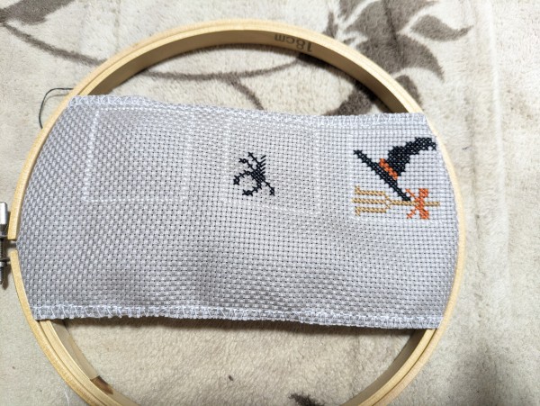 ロシアンブルーチクチク。布が硬くて苦戦してます。