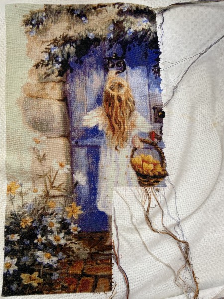 An American Sampler 1990 の図案から 18ctは1目が小さいので、18ctの布にいつまで刺繍できるかなと思いながら、コロナのステイホーム時一気に作りました