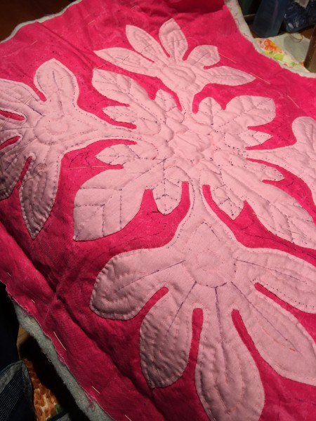ハワイアンキルトの縁をナインパッチで仕上げました。