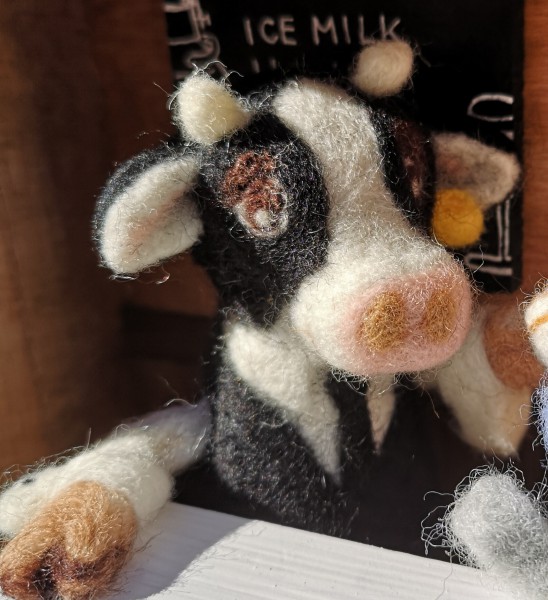 羊毛フェルトで今、よく耳にする「おててないない」香箱座りをする猫を作りました。