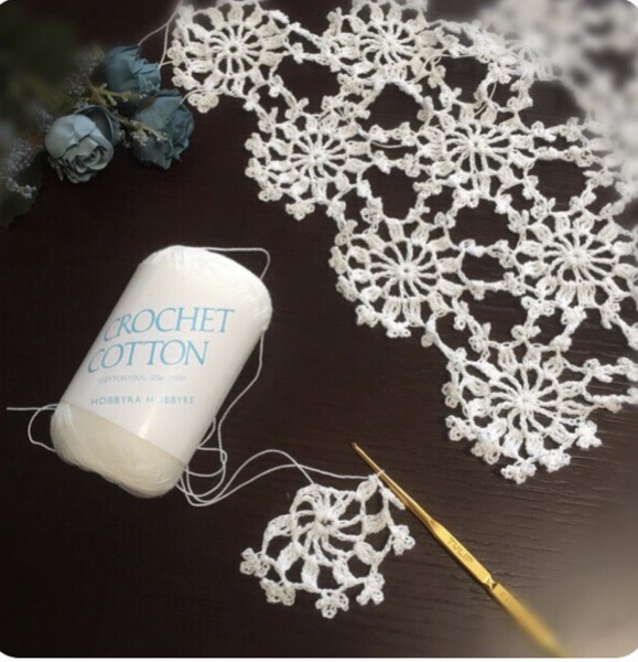ずっと前に買ったレース糸が出てきたので、ストールを編みはじめました。