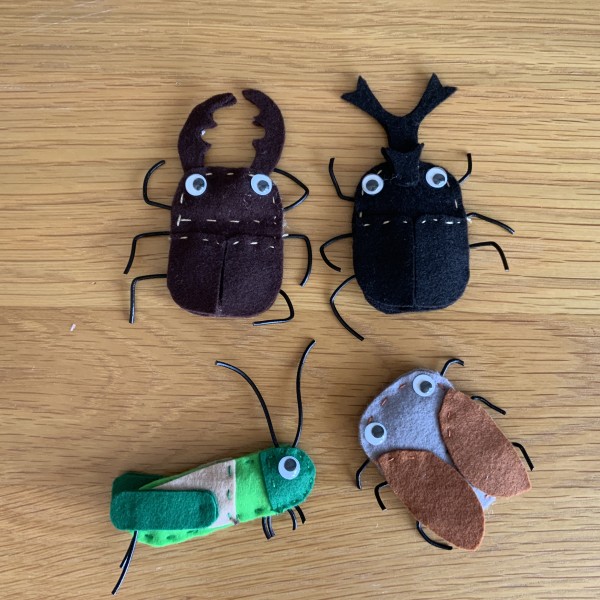 布おもちゃ布絵本⭐️きょうりゅうのたまごお子さんも作れるように考えた、フェルトの昆虫たちです。