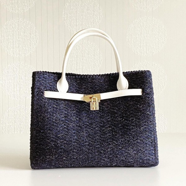 KoKo Shop自分用にオリジナル引き揃え糸を使って、ネット編み付けにて、バーキン形バッグを作りました。フォーマルにも使えて、卒業式や入学式、授業参観にも♪ 使いやすい、濃紺です♪ ※tricotさん考案の編み方orihimeで制作