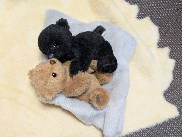 ドイツ製の「モヘア」という生地、ドイツ製のグラスアイを使い、あめふりくまのこ独自の オリジナルデザインで